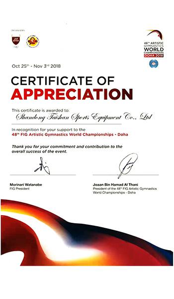 山东6686体育器材有限公司(以下简称6686体育器材公司)成立于2010年7月,位于山东省乐陵市经济技术开发区,是6686体育产业集团有限公司旗下子公司。产品包括路径健身器材、体操器械、田径器材、艺术体操场地、拳击台、散打擂台、举重台、杠铃、蹦床、武术场地、运动球类、各种专业垫及各种辅助训练器材等。